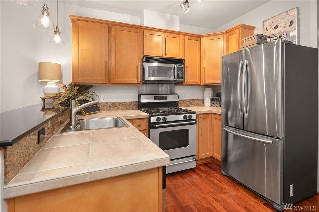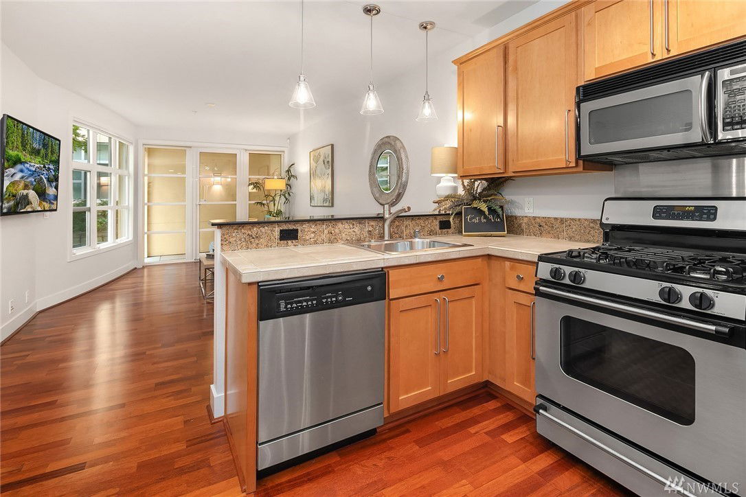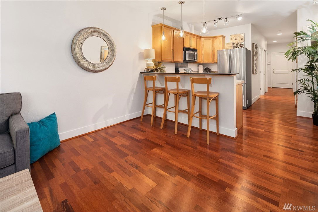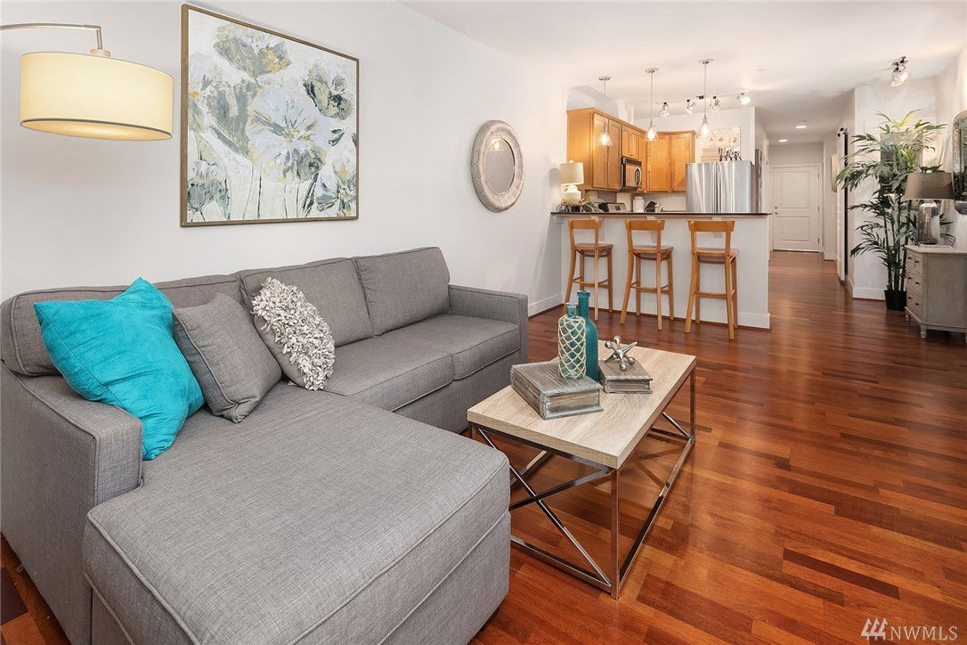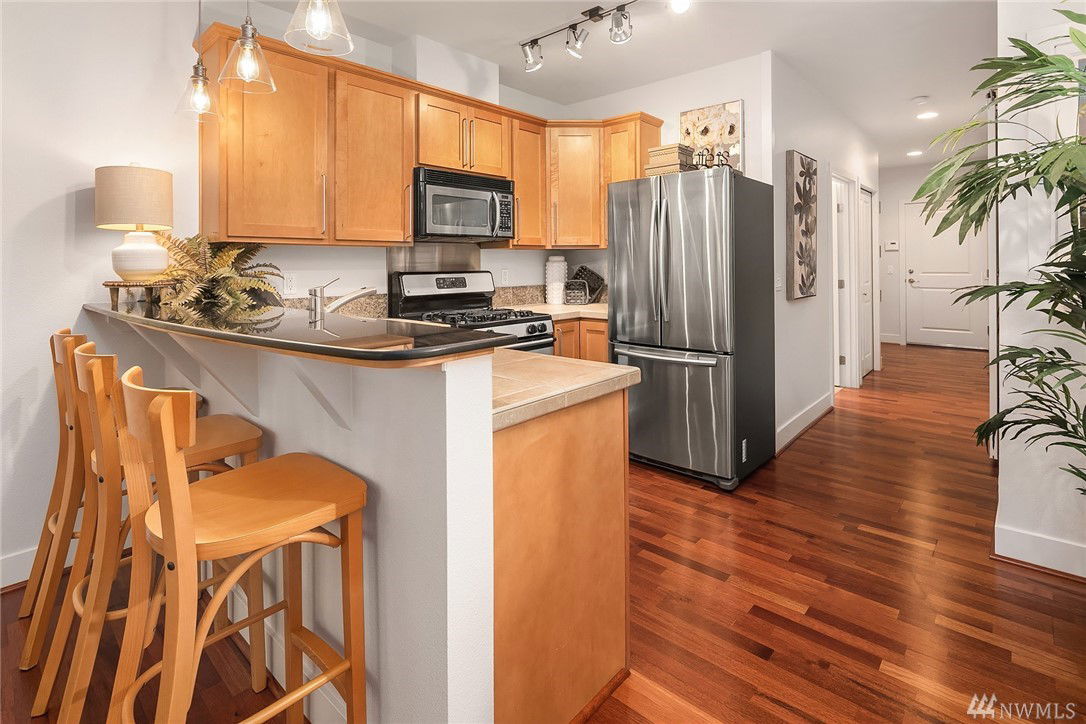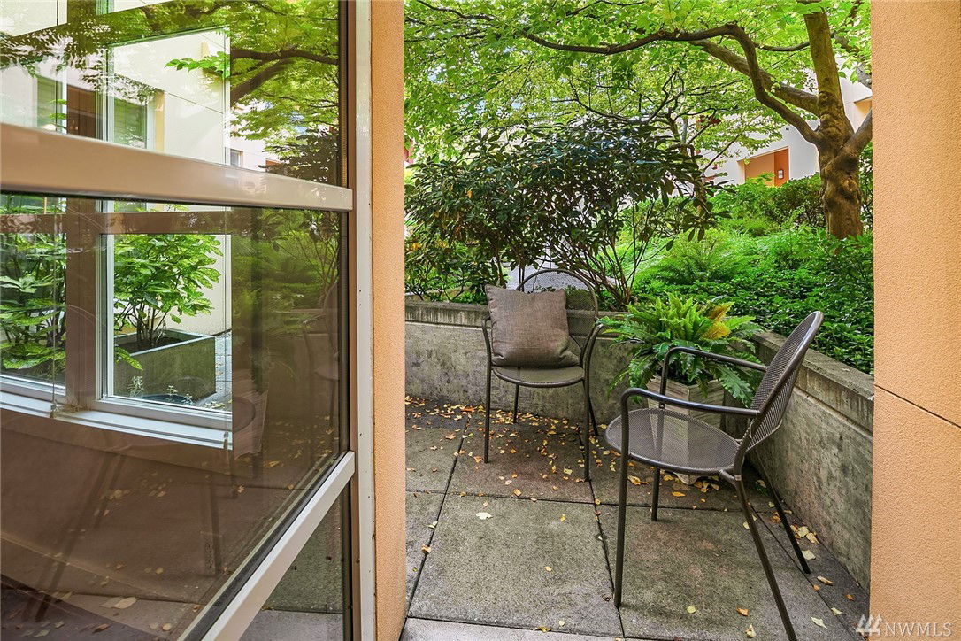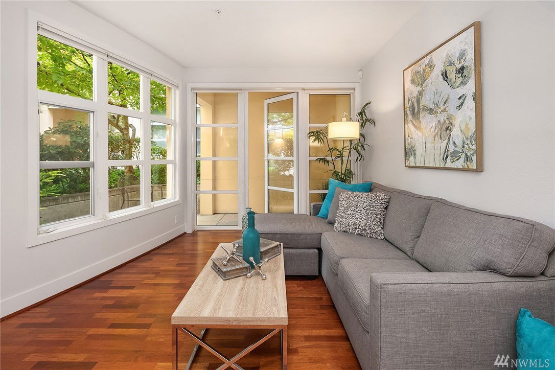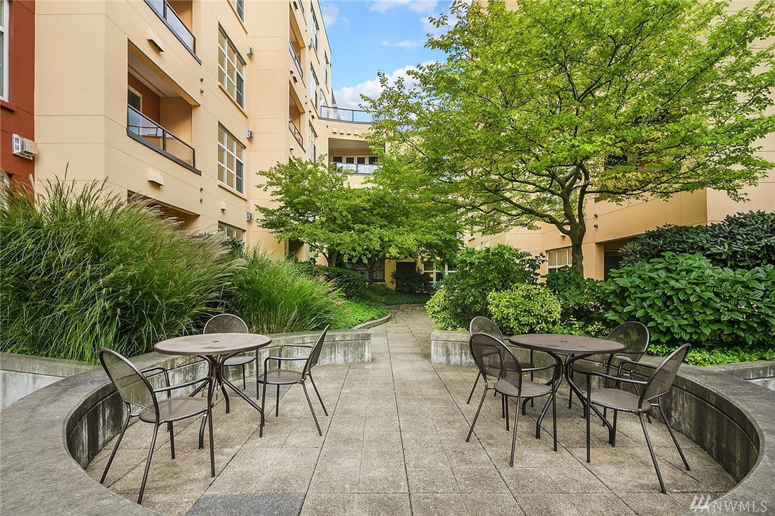 $5,000 BUYER BONUS!! Quiet end unit with amazing walk out patio! One bedroom/one bath with plenty of living space in beautiful Green Lake! Open concept Kitchen/Living area with tons of natural light. Steps away from Green Lake park, restaurants, & stores. Underground, gated parking with private/semi enclosed space and includes lg storage unit w/ additional refrig! You’ll love entertaining friends-covered patio expands to lovely community space. Secure building with great neighbors. Welcome home!